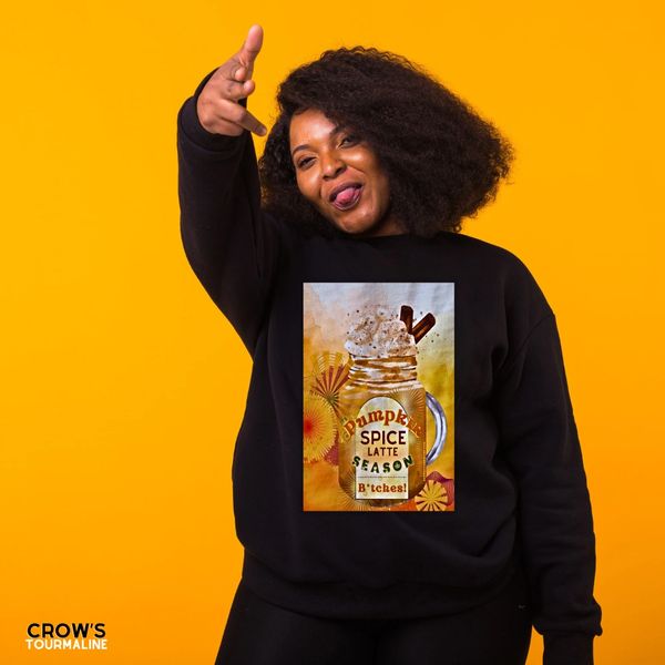 A stylish SUPER SOFT sweatshirt featuring Crow's Tourmaline unique It's Pumpkin Spice Latte Season B*tches sweatshirt design.